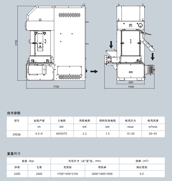 全新開發推出的DRDB立式鐵輥米機,用於大米加工過程中的脫胚工藝,單機處理量可滿足日處理200-250噸稻穀加工線的要求,在性能、能耗和投資效費比方面,是大米加工企業的理想選擇。